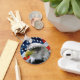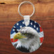 Chaveiro Patriótico com uma bela foto de perto da Águia Balda em frente à bandeira americana.