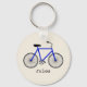 Um chaveiro com ilustração de uma bicicleta azul. Personalize com seu nome em bicicleta.