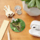 Esta chaveiro impressionante mostra uma fotografia de uma bela borboleta tropical. Tem lindas marcas verdes iridescentes por todas as asas. Tem suas asas dobradas enquanto repousa em algumas folhas. A fotografia foi tirada usando macrofotografia para um resultado incrivelmente detalhado.