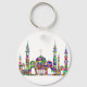 Um chaveiro barato, estilo botão, com uma colorida design de mesquita prismática iluminando a beleza do Islã. Facilmente personalizável para incluir o nome da sua mesquita ou uma saudação islâmica.