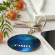 Um chaveiro personalizado com um fundo de espaço azul. Adicione seu próprio nome a este produto usando o modelo personalizado.