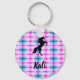 Chaveiros personalizados de Criação de Cavalo Negro - Design abstrato rosa e azul-aqua para o fundo. Belo cavalo preto, acima do nome personalizado de sua escolha!