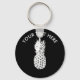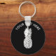 Chaveiro personalizado de abacaxi em forma de botão redondo. Ícone de design de comida saudável para amantes de ananás. Adicione seu próprio nome, letras iniciais de monograma ou citação engraçada. Chaveiros fofos para homens, mulheres e crianças que amam frutas. Lindo brinde promocional para adultos e crianças. Acessórios promocionais para mercados frescos, quitandas, agricultores locais, restaurantes, veganos, vegetarianos, lojas, supermercados, festa de casamento em destino tropical, etc. Altere a quantidade para obter o preço de atacado barato. Preto e branco ou cor personalizada.