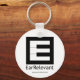 Chaveiro do botão branco com o logotipo EarRelevant e URL do site.