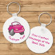 Cartoon de brinquedo rosa. Cor de fundo personalizada. Texto personalizado de ambos os lados.