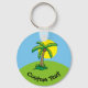 Ilustração de desenho animado de uma palmeira. Cor de fundo personalizada. Texto personalizado de ambos os lados.
