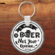 Chaveiro de Bebendo Engraçado Personalizado. Design preto e branco, mas o fundo pode ser alterado.