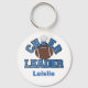 Corrente de chave de cheerleader, com gráficos de futebol, com texto em volta lendo CHEER LEADER. O texto azul na parte inferior é personalizável para ler o que você quiser. Faz excelente de presentes para qualquer cheerleader de Pee Wee para Pro.