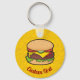 Ilustração de desenho animado cheeseburger. Fundo de comida rápida amarelo sem aspecto. Texto personalizado de ambos os lados.