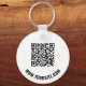 Chaveiro de código QR personalizado. Cor de fundo personalizada. Texto personalizado.