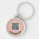 Chaveiro de código QR personalizado. Cor de fundo personalizada. Texto personalizado.