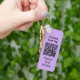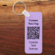 Chaveiro de código QR personalizado. Cor de fundo personalizada (use uma clara). Texto personalizado de ambos os lados.