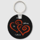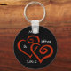 Red Entwined Hearts Chaveiro, sobre fundo preto com texto personalizável, incluindo data. Faz um favor de casamento excelente!