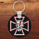 Esta chave tem uma cruz de ferro preto com uma face craniana com um capacete ligado. O capacete tem uma cor de cinza sombreada com sotaques vermelhos. com