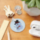 Chaveiro com design com design com uma ilustração de um elefante azul com um chapéu e um rato marrom; ilustrada por Radka Kavalcova/MaxiHarmony