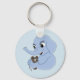 Chaveiro com design com design com uma ilustração de um elefante azul com um rato marrom; ilustrada por Radka Kavalcova/MaxiHarmony