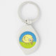 Um desenho animado de pássaros amarelo giro e engraçado sobre a grama e fundo do céu.