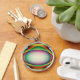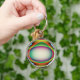 Esta chaveiro apresenta um padrão multicolorido de cores psíquicas brilhantes em torno de uma estrutura central em forma de ovo. Parece uma fantasia de uma espaçonave alienígena pronta para sequestrar uma terra.