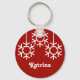 Chaveiro de Natal simples e quente com flocos de neve apresentando um trio de flocos de neve modernos e elegantes. Este chaveiro de Natal faz um presente de na moda ou um gatilho de estoque. Personalize este design em floco de neve com seu próprio texto personalizado.