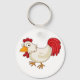 Esta design é uma galinha de desenho animado. O frango é branco com cauda vermelha e está de pé. O frango está no estilo do desenho animado. Este design de galinha de cartoon parece excelente nesta Chaveiro