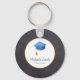Chaveiro personalizado bonito com uma ilustração de um boné de formatura azul com uma fita de ouro. Personalize o texto com suas próprias informações e use esta chaveiro para dar ao formando ou para complementar seus favores de graduação. Ilustrada e projetada por Patricia Alvarez.