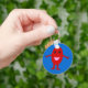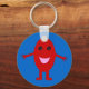 Um desenho de uma uva vermelha sorridente com olhos escuros brilhantes e uma boca rosa sobre fundo azul com os braços abertos. Uma design divertida para crianças ou um presente de novidade peculiar para adultos.