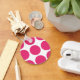 Bonita e moderna Chaveiro de Bolinhas de grandes . Este design apresenta bolinhas circulares grandes de tamanho superior em cor-de-rosa e branco. O texto pode ser adicionado a esta design para lhe dar um toque pessoal.