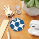 Bonita e moderna Chaveiro de Bolinhas de grandes . Este design apresenta bolinhas circulares grandes de tamanho excessivo em azul e branco. O texto pode ser adicionado a esta design para lhe dar um toque pessoal.