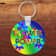Um design de flor gráfica hippie pelo artista/designer Charmaine Paulson em um chaveiro.
