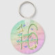 Um incrível arco-íris de cores, flores cor-de-rosa e borboletas lavandas preenche esta 16ª garota Feliz Aniversário, ao redor da cadeia chave, com celebração. O prazer de um adolescente. Você também pode gostar dos presentes e cartões correspondentes disponíveis na minha loja. Design original do Anura Design Studio.