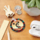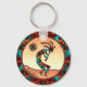 Este é um único "Um dos tipos" Chaveiro do sudoeste de Kokopelli! Ele apresenta um Kokopelli Sudoeste tocando flauta e dançando sob o sol no deserto... cercado por uma borda sudoeste em Turquesa, Laranja e Negro! Este é um Design de Arte Original do Artista Kerry Miller.