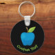 Maçã azul com ícone de folha. Cor de fundo personalizada. Texto personalizado de ambos os lados.