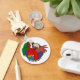 Esta chaveiro de Scarlet Macaw colorida tem um desenho animado do papagaio dentro a um círculo azul, com uma palmeira tropical atrás dela. Uma das asas do pássaro está estendida. O nome da espécie é impresso na parte inferior. Presentes únicos de Scarlet Macaw para amantes de papagaios.