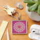 Este é um único "Um dos tipos", cor-de-rosa, verde e Chaveiro de Flor Azul Mandala! Ela apresenta um belo Design geométrico de Mandala, Rosa, Verde E Azul..... num fundo Mauve! Um Mandala é um Símbolo Espiritual e Ritual... Transformando o Universo de Um de Sofrimento em Um de Alegria e Felicidade! Design gráfico do artista Kerry Miller.