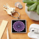 Este é um único "Um dos tipos", Purple e Blue Mandala Chaveiro! Ela apresenta uma bela Design geométrica de Mandala roxa e azul..... num fundo negro! Um Mandala é um Símbolo Espiritual e Ritual... Transformando o Universo de Um de Sofrimento em Um de Alegria e Felicidade! Design gráfico do artista Kerry Miller.