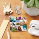 Chaveiro de metal com moldura branca personalizada com 18 fotos de colagem modelo de cantos arredondados.