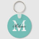 Chaveiro de monograma personalizado com nome azul de turquesa. Letra inicial Vintage com tipografia de script elegante. Boa ideia de presente para mulheres e meninas da moda. Faça seu próprio monograma presente para na moda de casamento, chá de panela, solteira, final de semana das meninas, noivado, aniversário, aniversário etc. Divertido para a noiva ser, dama de noiva, madrinha de casamento, florista, mãe da noiva, mãe do noivo etc. Aqua e branco.