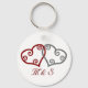 Um excelente-chave para um casal feliz para que todos saibam do seu novo compromisso. Mostra dois corações interligados, um em vermelho e outro em prata. Monograma totalmente personalizável.