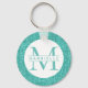 Bonito aquamarino, teal, turquesa, brilho azul-esverdeado com chaveiro de monograma personalizado é divertido e feminino! Mostrado com texto de cor especial, mas mude para qualquer cor usando o editor avançado para criar um chaveiro personalizado glamouroso para a menina feminina e mulheres brancas que você conhece! Cute bat mitzvah ou favor de festa de aniversário ou dama de damas de honra. Visite o compro Paper Grape Zazzle para coordenar itens e outros estilos de chaveiro.