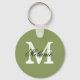 Chaveiro de monograma personalizado de nome verde muscular personalizado personalizado personalizado. Letra inicial Vintage com tipografia de script elegante. Festa bonitinha favorece a ideia da corrente chave. Faça seu próprio monograma presente para na moda de casamento, chá de panela, solteira, fim de semana, noivado, aniversário etc. Divertido para a noiva ser, dama de noiva, madrinha de casamento, florista, mãe da noiva, mãe do noivo etc. Verde-oliva e branco.