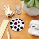 Você adorou a saia de poodle? O capricho de bolinhas e preto e rosa? Bem, nós temos uma cadeia de teclas fofinha, para vocês, que é branca com bolinhas pretas e tem um monograma de script rosa personalizável. Divertido, e faz um belo presente também.