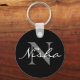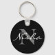 Chaveiro de monograma com nome de na moda branco e preto elegante. Tipografia de script clássico e cor preta de fundo. Design elegante para homens, mulheres e crianças. Monograma com sua letra inicial. Boa ideia de presente de aniversário para pai, pai, mãe, mãe, marido, esposa, filho, filha, etc. Também é bom como um favor de partido em casamentos quic, reunião, graduação etc. Estilo de luxo.