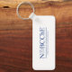 Chaveiro de metal retangular exibindo o logotipo azul NOBCChE em ambos os lados.