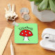 Um cogumelo vermelho com espaço para um nome. O fungo tem um boné de cúpula vermelha e manchas brancas. É desenhado num estilo de desenho animado simples.