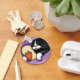 Chaveiro de gato preto Whimsical. Depois de um dia agitado, Sox, o gato adora se abraçar ao lado de seu pato favorito por um longo snooze. Trabalho de arte © Lisa Marie Robinson.