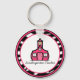 Um chaveiro com o logotipo da dentro da escola cor-de-rosa com um quadro de impressão zebra cor-de-rosa. Adicione seu nome ou outro texto de sua escolha.