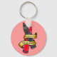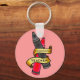 Um chaveiro para professores com uma rosa claro de fundo com uma tatuagem vintage inspirou um design de dois lápis (rosa e cinza) embrulhados em uma faixa que dizia "Professora do jardim de infância". Ou personalize com seu próprio texto.