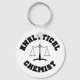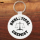 Químico Analítico - chaveiro branco com letra de estilo colegial preto e gráfico de balanço antigo.