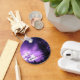 Uma fotografia roxa divertida por LC Aplicando Fotografia em um chaveiro redondo.