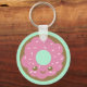 Chaveiro com um design de rosquinha giro sobre um fundo verde da casa da moeda.